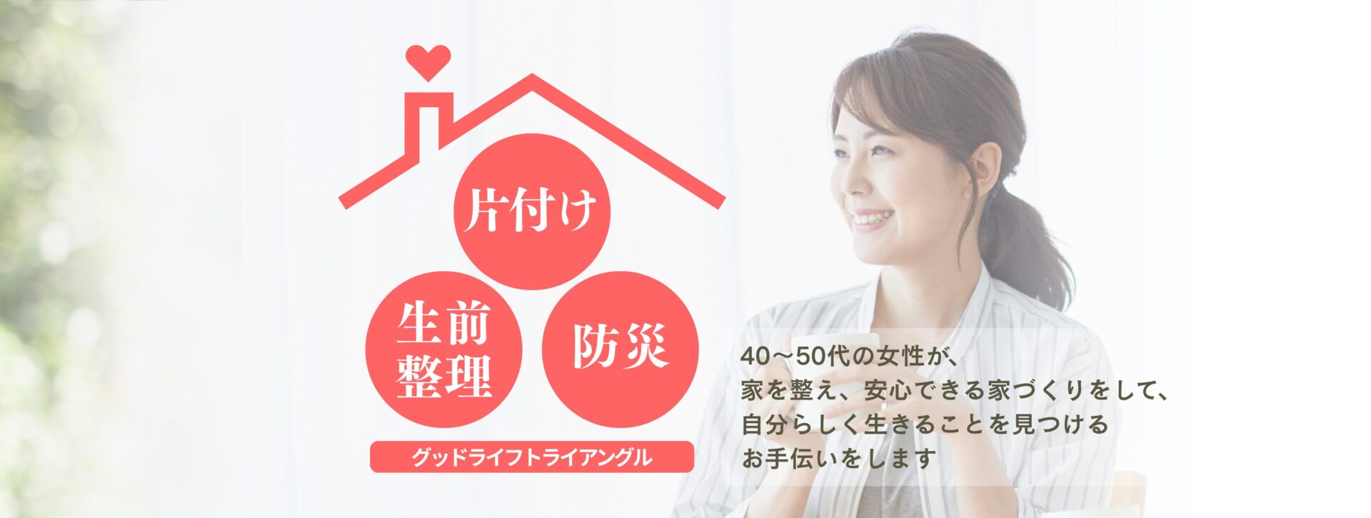 GOOD LIFE-100®では、そのためにしっかりヒアリングをして片付く仕組みを一緒に作っていきます。また、物との向き合い方や、防災の視点からもお話をさせていただきます。まずは無料の30分相談にお申し込みください。オンラインでの相談ですので、おうちが片付いていなくて・・・なんて心配は無用です。 サポートに伺う時も、普段の様子を見せていただきたいので、そのままで大丈夫です。