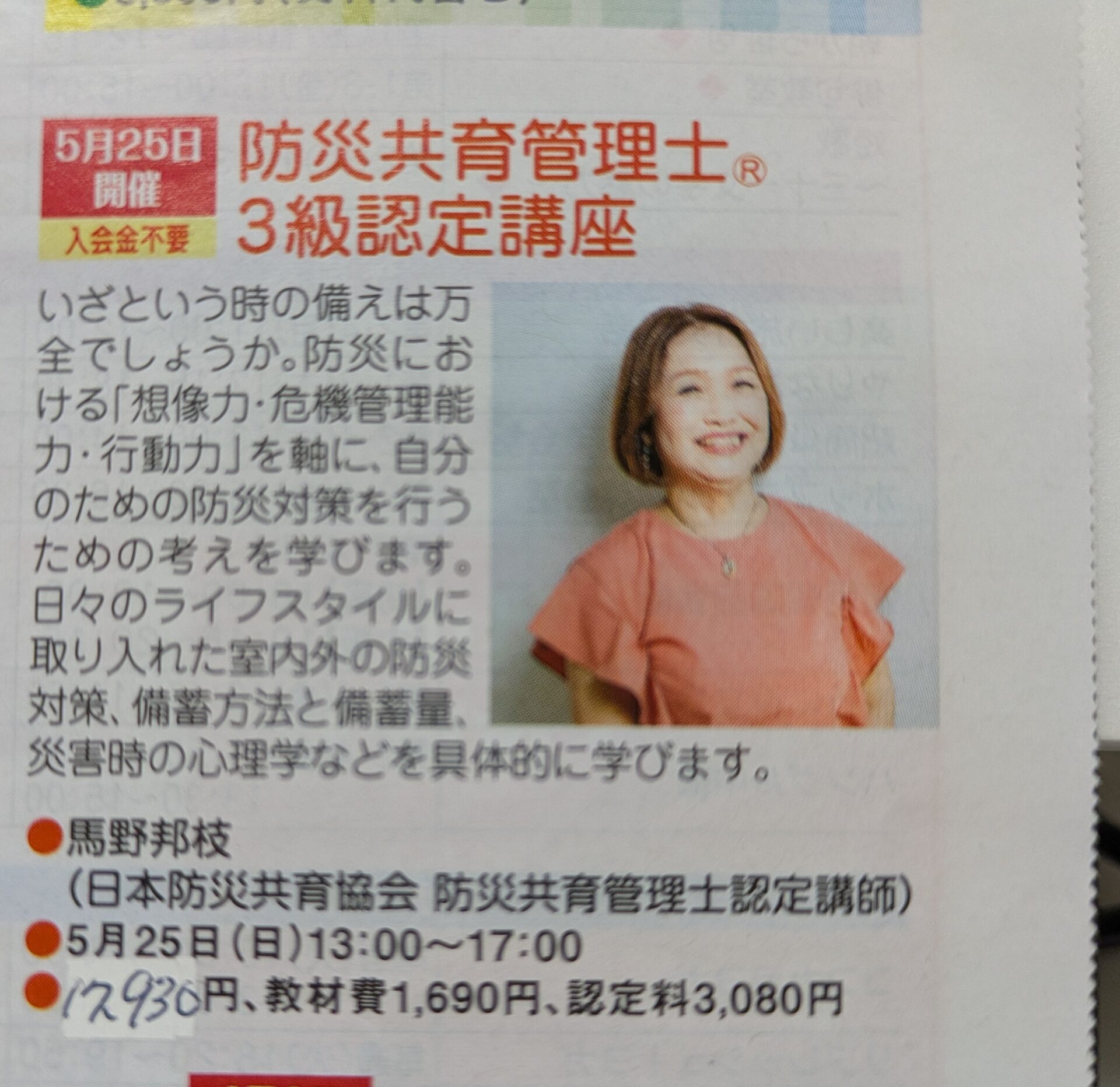 【防災共育管理士講座】です。