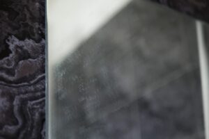 浴室の鏡の白いウロコ…。
